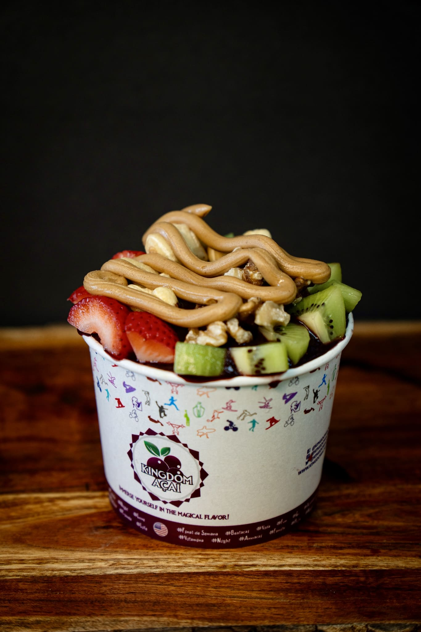 Toppings: kiwi, strawberry, cashews, walnuts & peanut butter.